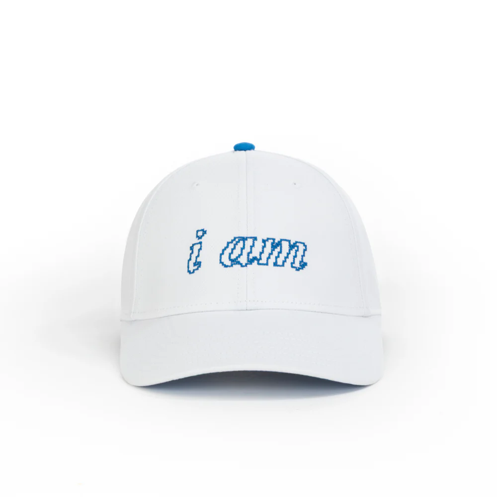 This cap isn’t just about identity, it’s about witnessing the process of becoming. I am aware. I give. I exist. I understand. A crisp white 100% cotton cap with a clean white base and blue contrast detailing. The build stays lightweight, supported by a sweat-resistant cotton sweatband. Complete with an adjustable buckle strap at the back that lets you adjust the fit with ease. This baseball cap keeps things simple.
