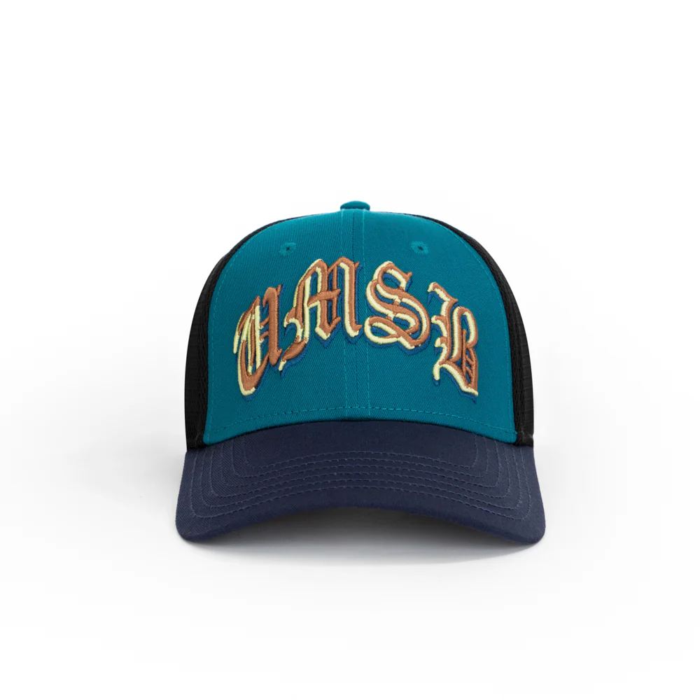 Built for the UMSB lineup, this trucker cap uses 280 GSM cotton on the crown with a black mesh back for ventilation. The teal and navy dual tone colorway gives it a sharp contrast, while the raised UMSB embroidery adds depth and structure. The structured build sits well on the head and holds shape, making it a solid pick for everyday fits, gym runs, and ride days. Works best with darker outfits, cargos, or relaxed layers.